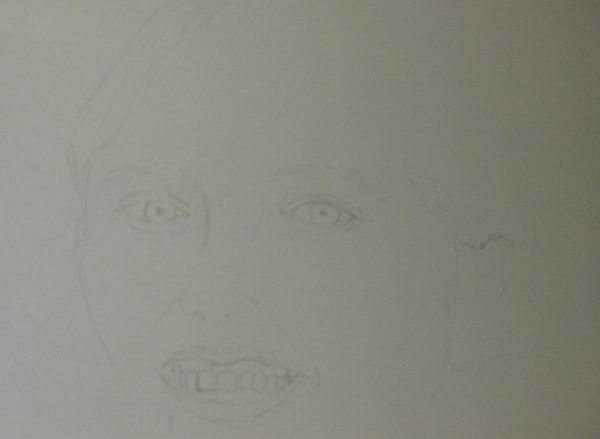 I have made a sketch of a woman's face, which I want to draw with colored pencils: